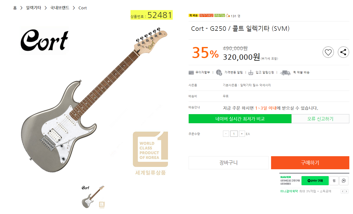 콜트 g250 또한 안정된 퀄리티로 입문기로서 좋은 포지션을 유지해 온 악기라고 생각되어 선정.